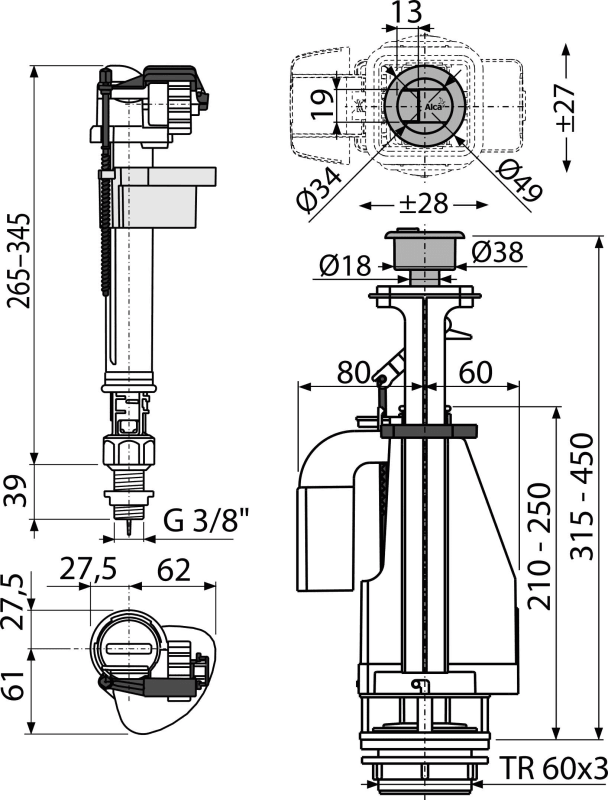 - Конструкція дозволяє регулювати висоту механізму в залежності від висоти бачка