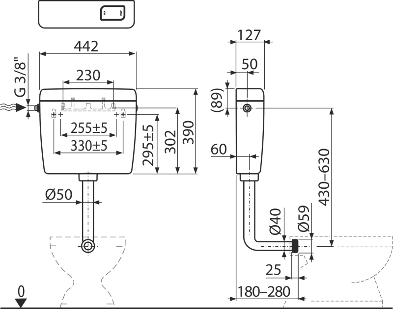 - Обсяг бачка 8 л з можливістю регулювання обсяг води для змиву