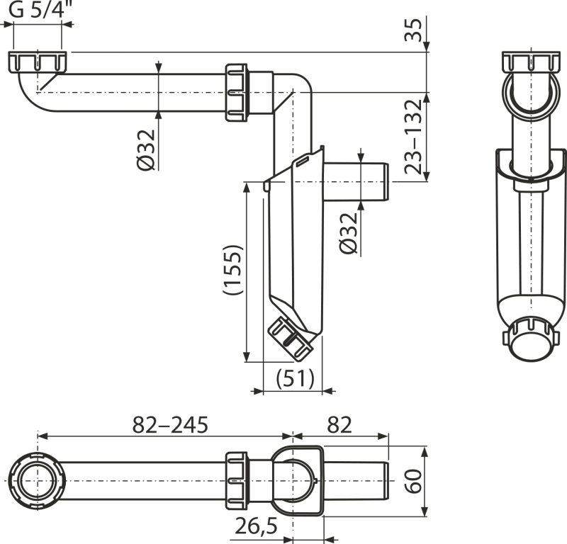 Сифон для умивальника для меблів DN32 з накидною гайкою 5/4"