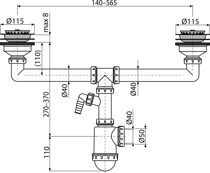 • Можливість підключення каналізаційної труби Ø50 або Ø40 мм